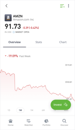 In case you have decided to buy the stock, you need to tap the green 'Invest' button in the bottom right corner.