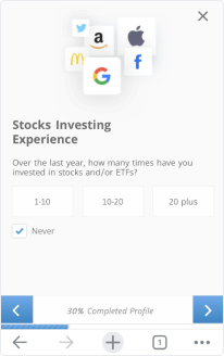 Answer these questions based on your actual experience. eToro has to make this assessment to decide (for your own protection) whether to limit your access to instruments or trading forms that might be too risky for you. You will be able to trade shares regardless of your answers.
