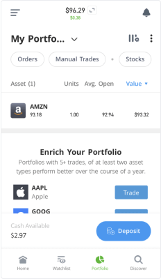 You can see a magnifying glass in the bottom right corner called “discover”. Here you can find all the investment options you can choose at eToro