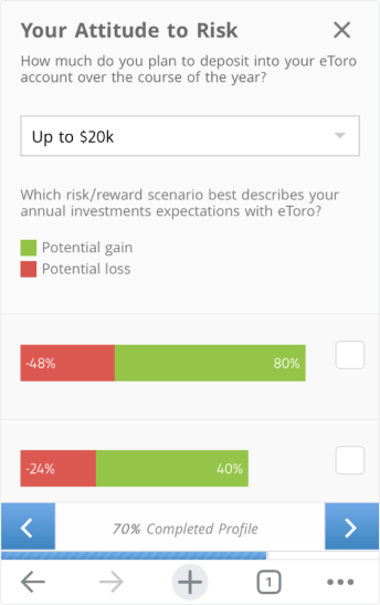 - Your Attitude to Risk: Here, the broker would like to know how much you're willing to invest - and potentially lose - so that they can help you with your trading strategies in the future.