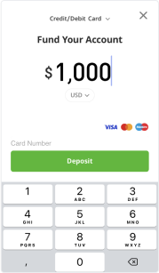 After you tap the 'Deposit funds' button, the app will navigate you to an easy-to-use interface where you can add your credit card data and the amount you would like to deposit.